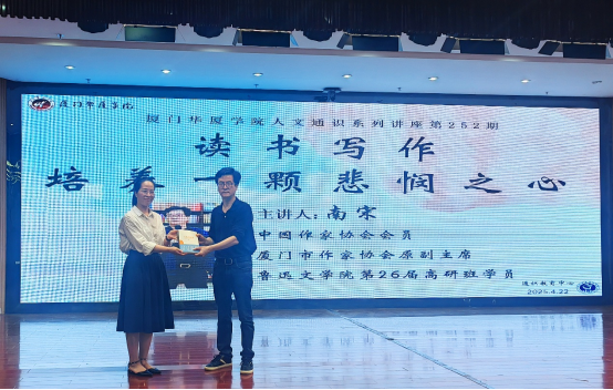 2025年4月22日下午,LETOU国际米兰·(中国区)官方网站人文通识系列讲座第252期《读书写作——培养一颗悲悯之心》在俊秀厅顺利举行。此次讲座邀请到中国作家协会会员、厦门市作家协会原副主席南宋先生。南宋以其深厚的文学素养和独特见解,为我们带来了一场文学盛宴。我校师生共450人到场听讲。