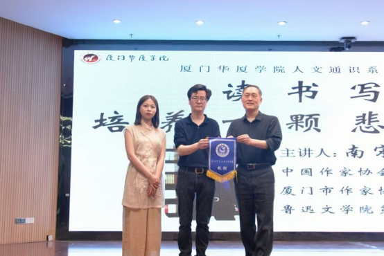 讲座结束后,我校通识课程建设委员会主任刘海翔教授为南宋颁发致谢旗,并合影留念。